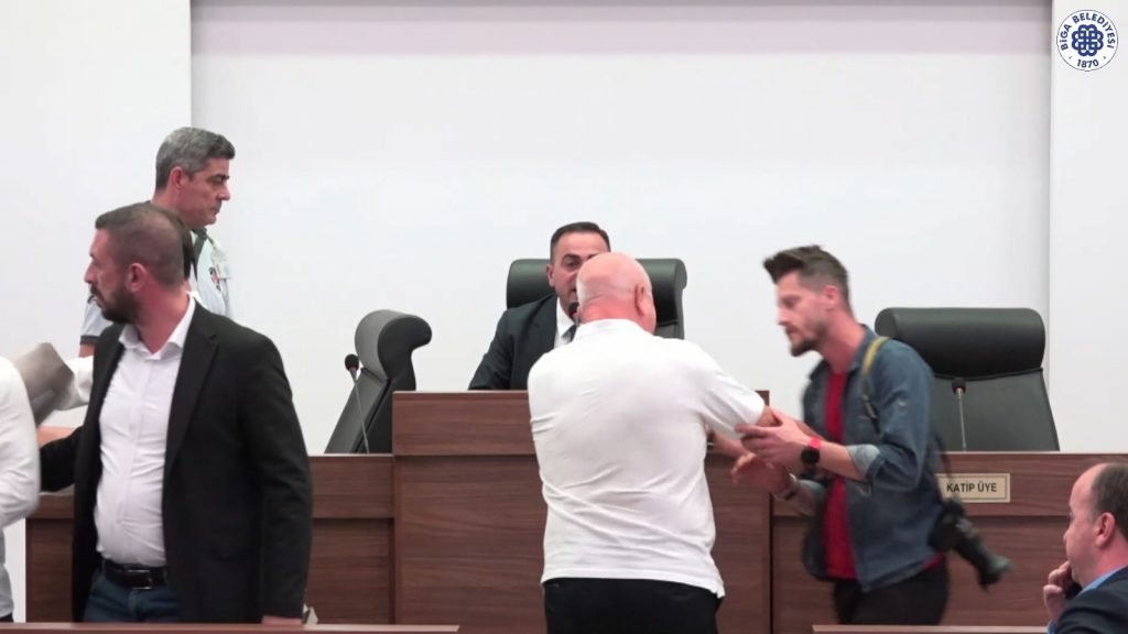 Meclis toplantısına katılan ve Başkan Erdoğan’ın açıklamalarıyla memnuniyet duyan onlarca şoför esnafını galeyana getirmeye çalışan İyi Parti Meclis Üyesi İbrahim Demircan, konuşmaya devam edince Başkan Erdoğan söz hakkı vermediğini söyledi. Bu duruma sinirlenerek daha da bağıran Demircan, toplantının huzurunu bozmaya çalışınca Başkan Erdoğan tarafından uyarıldı. Art arda yapılan uyarıların ardından Başkan Erdoğan devam eden tavırlar nedeniyle görev ve yasal yetkisini kullanarak Demircan’ın Meclisten çıkarılması talimatını verdi. Bir anda ayağa kalkarak Güvenlik görevlilerinin üzerine yürüyen Demircan, elini savurarak bağırmaya devam ederken, CHP Meclis Üyesi Zafer Demirbaş güvenlik görevlisini, Bağımsız Meclis Üyesi Zeki Mutlu ise Başkan Erdoğan’ın kürsüsünün önündeki fotoğrafçıyı tartakladı.